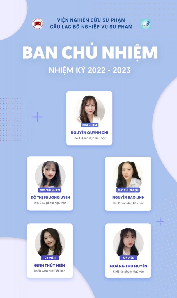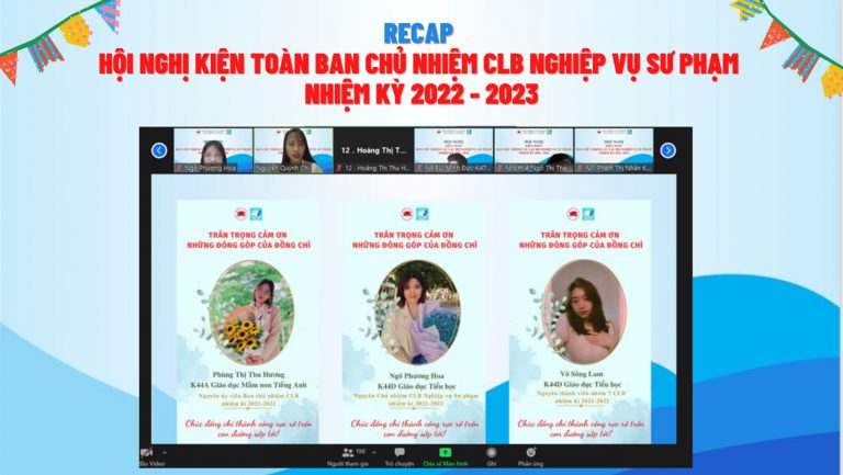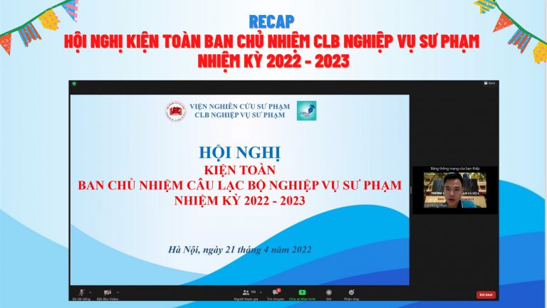 Vào lúc 20h30 ngày 21 tháng 4 năm 2022, CLB Nghiệp vụ Sư phạm – Trường Đại học Sư phạm Hà Nội 2 đã tổ chức Hội nghị kiện toàn Ban Chủ nhiệm CLB Nghiệp vụ Sư phạm nhiệm kỳ 2022 – 2023.